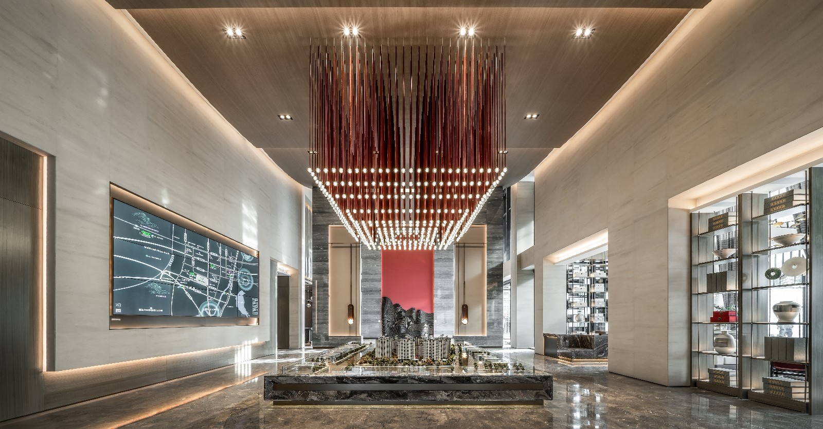 大面积运用的大理石瓷砖形成了宛如泼墨一般的纹路,使用现代材料演绎东方气质,整个空间都充满了中华文明独有的山水意境