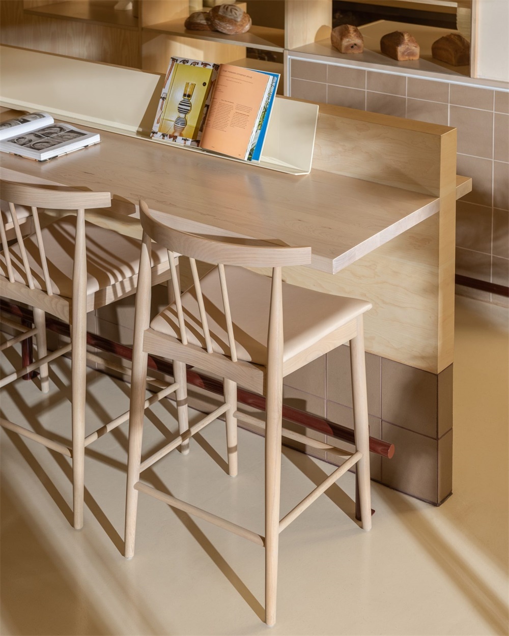 面包房的内部空间为2800平方英尺(260平方米),呈温暖的焦糖色